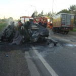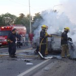 Debido al brutal impacto el automóvil comenzó arder en llamas, ocasionando que el ocupante del automóvil, muriera calcinado por las llamas, personal de bomberos voluntarios de Pergamino se presentaron en el lugar de la tragedia logrando en pocos minutos sofocar las llamas que se habían apoderado del rodado, por estas horas al cierre de este articulo aun se desconoce la identidad del conductor.