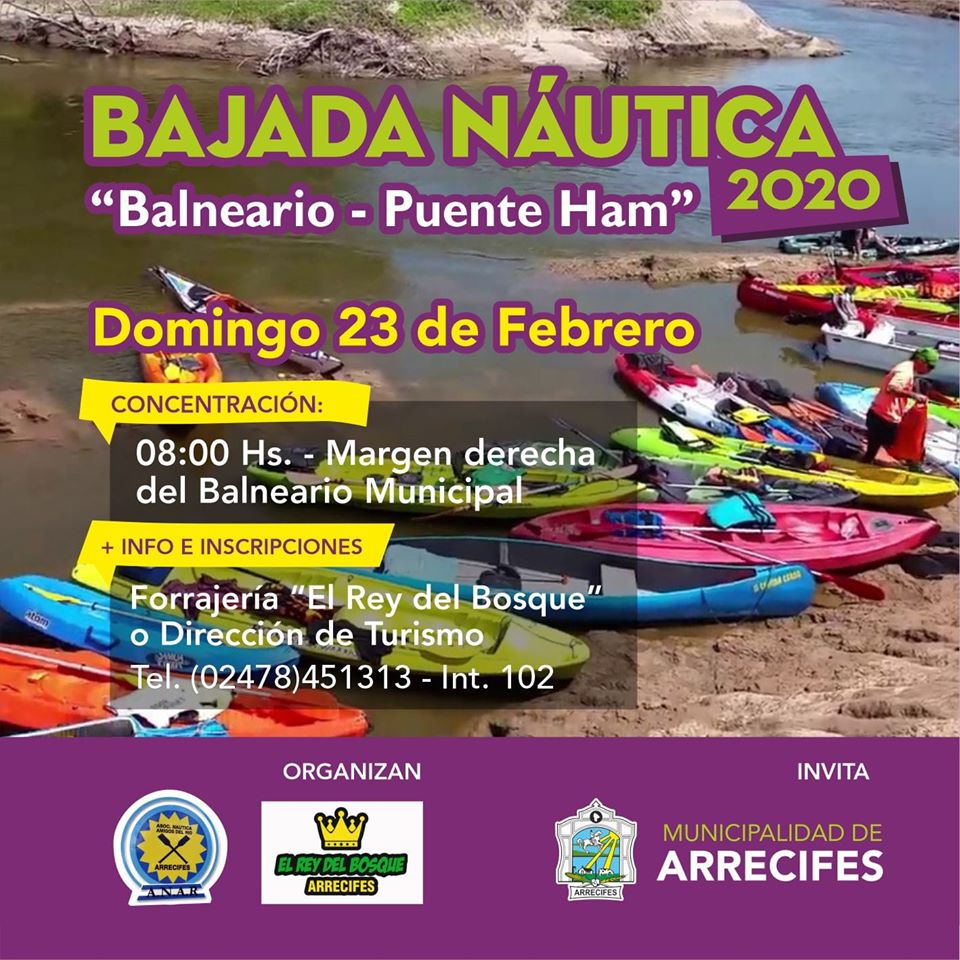 El domingo 23 se llevará a cabo una bajada náutica Arrecifes – Puente Ham, habiendo establecido como lugar de concentración, la márgen derecha del Balneario Municipal a las 08:00.