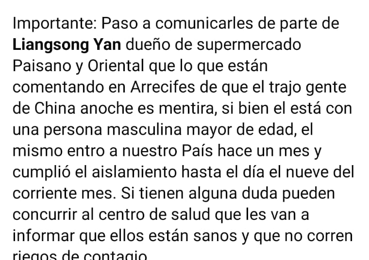 En principio, tratemos de chequear todo lo que leemos, lo que nos pasan por las redes sociales y respetemos a la autoridad de salud de la Nación, la Provincia y las locales. El hecho es totalmente FALSO.