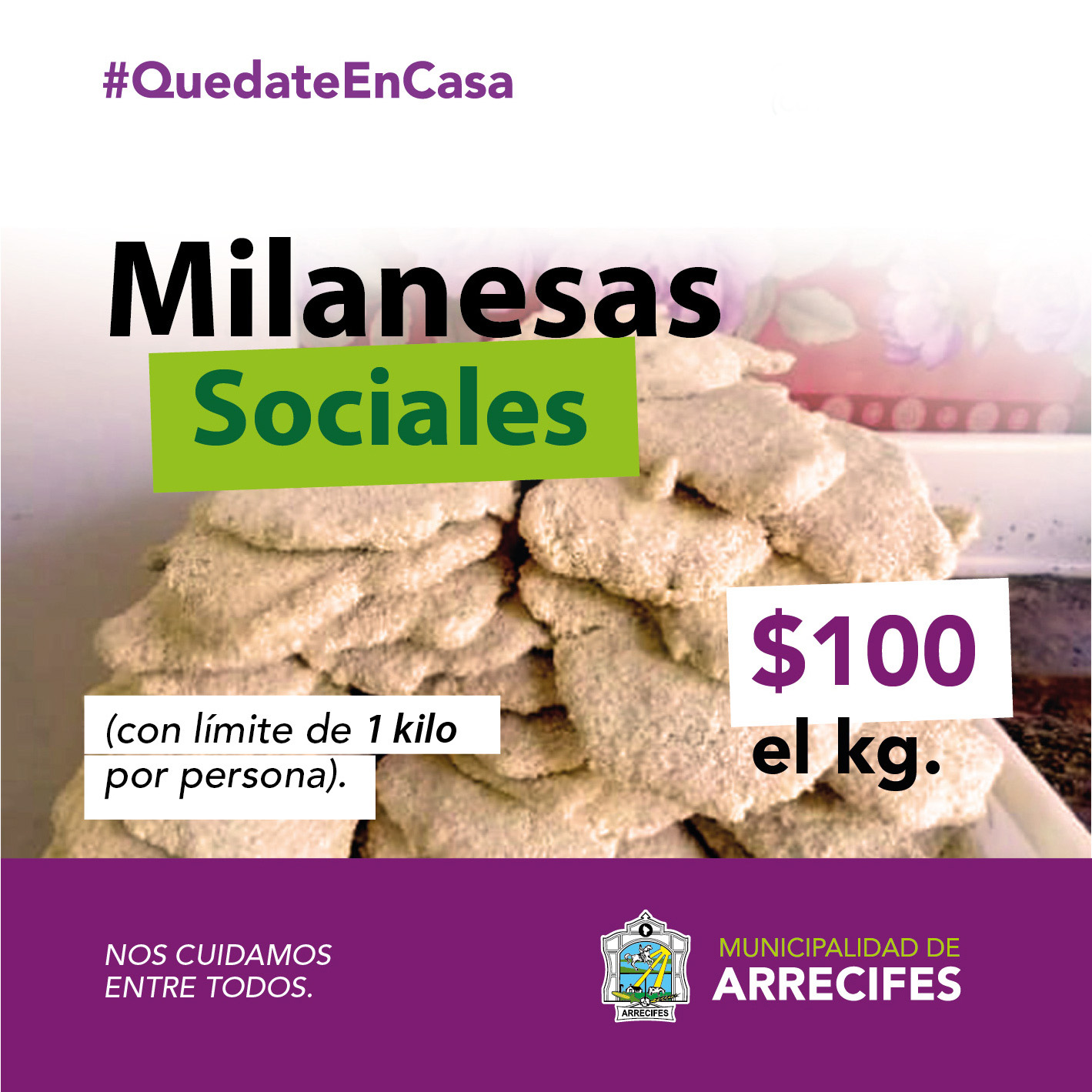 Como en otros días de la semana el pan y las verduras en bolsones a bajo costo, los vecinos de Arrecifes hoy podrán adquirir el kilo de milanesa de pollo a sólo 100 pesos, en los siguientes comercios:
