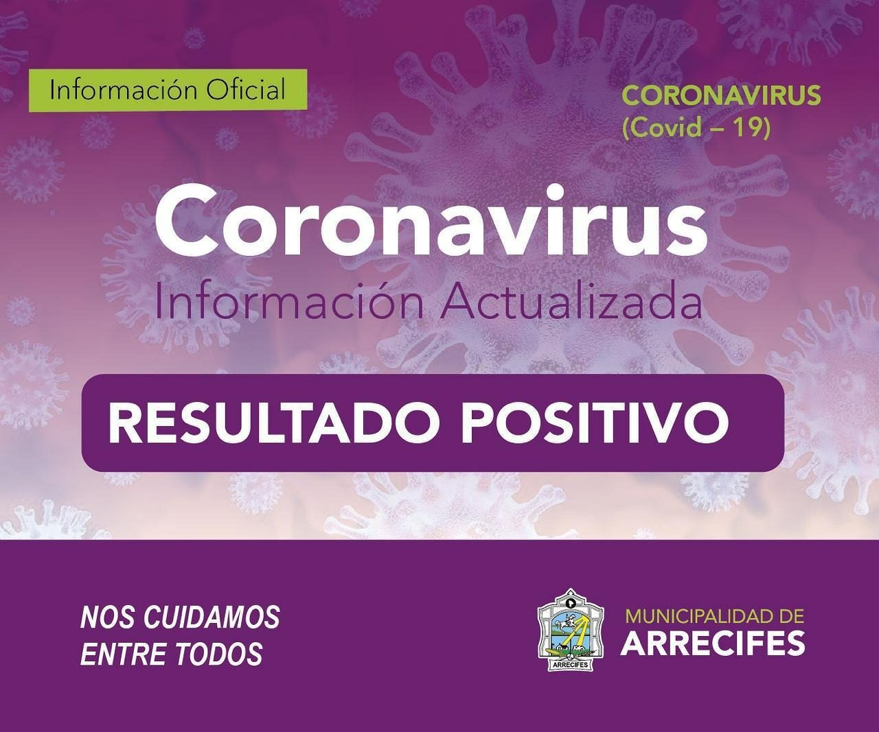 «La Municipalidad de Arrecifes informa que el hisopado realizado a un familiar del empleado de Arrecifes que trabaja en Granja Tres Arroyos de Capitán Sarmiento y que diera resultado positivo el pasado día jueves, también arrojó un diagnóstico de COVID-19.