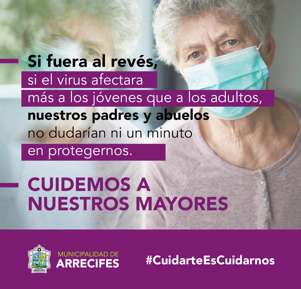 Ejemplo de esto es el flyer en el que advierte que, si al contrario de lo que sucede con el Covid, fuesen los jóvenes los más vulnerables, los adultos mayores no dudarían en tomar todas las medidas necesarias para que estos no se contagien. Algo que la juventud muchas veces no tiene en cuenta a la hora de organizar o participar en reuniones que no están permitidas y que aumentan el riesgo de contagio.