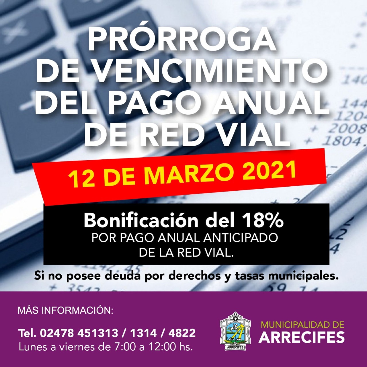 La Municipalidad de Arrecifes informa que el pago anual de las tasas municipales 2021, prorroga su vencimiento hasta el día 12 de marzo inclusive; y con el pago anual de las mismas te beneficias con la bonificación del 18%.